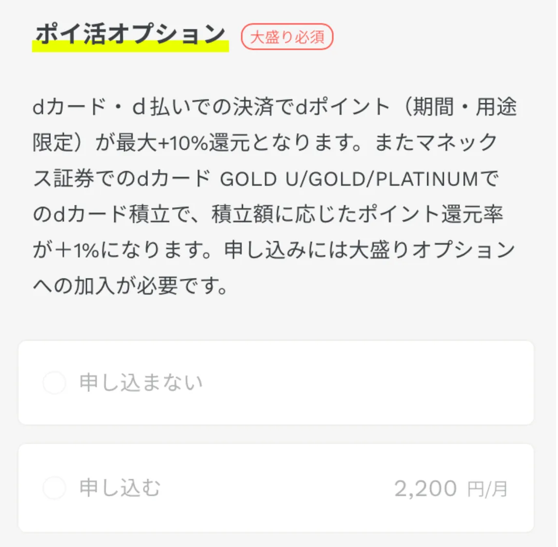 - ポイ活オプション:「申し込まない(30GBを選べばスルーできます。)」