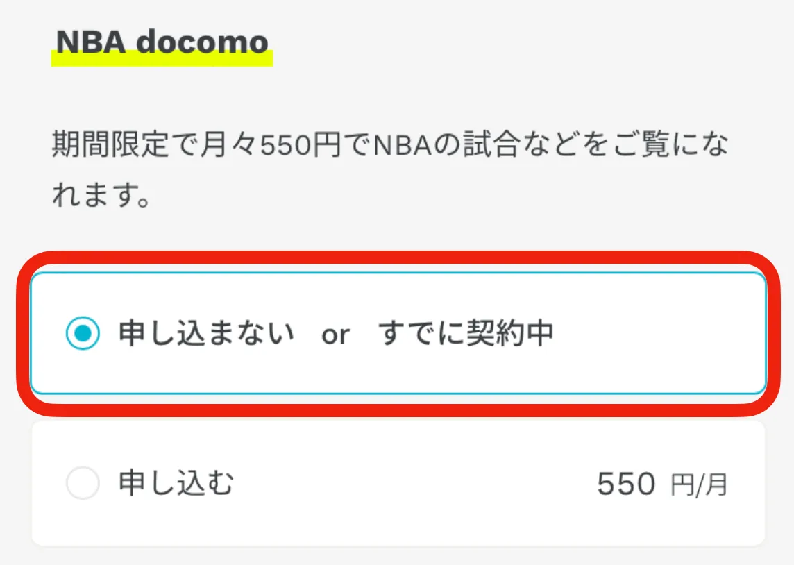 - NBA docomo: 無駄になるのでチェックなしでOK